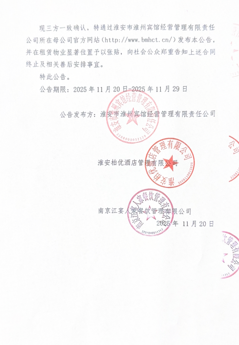关于《淮州宾馆租赁合同》及相关协议解除的公告